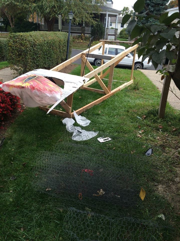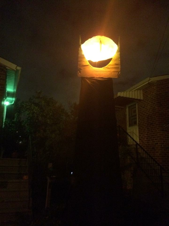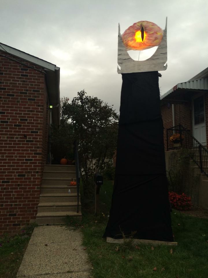 Project: Constucted a well-known movie character as a tower with large eye that lit up. Materials included chicken wire, shower curtain, markers, duct tape, wood, cardboard, fabric, and lighting equipment.